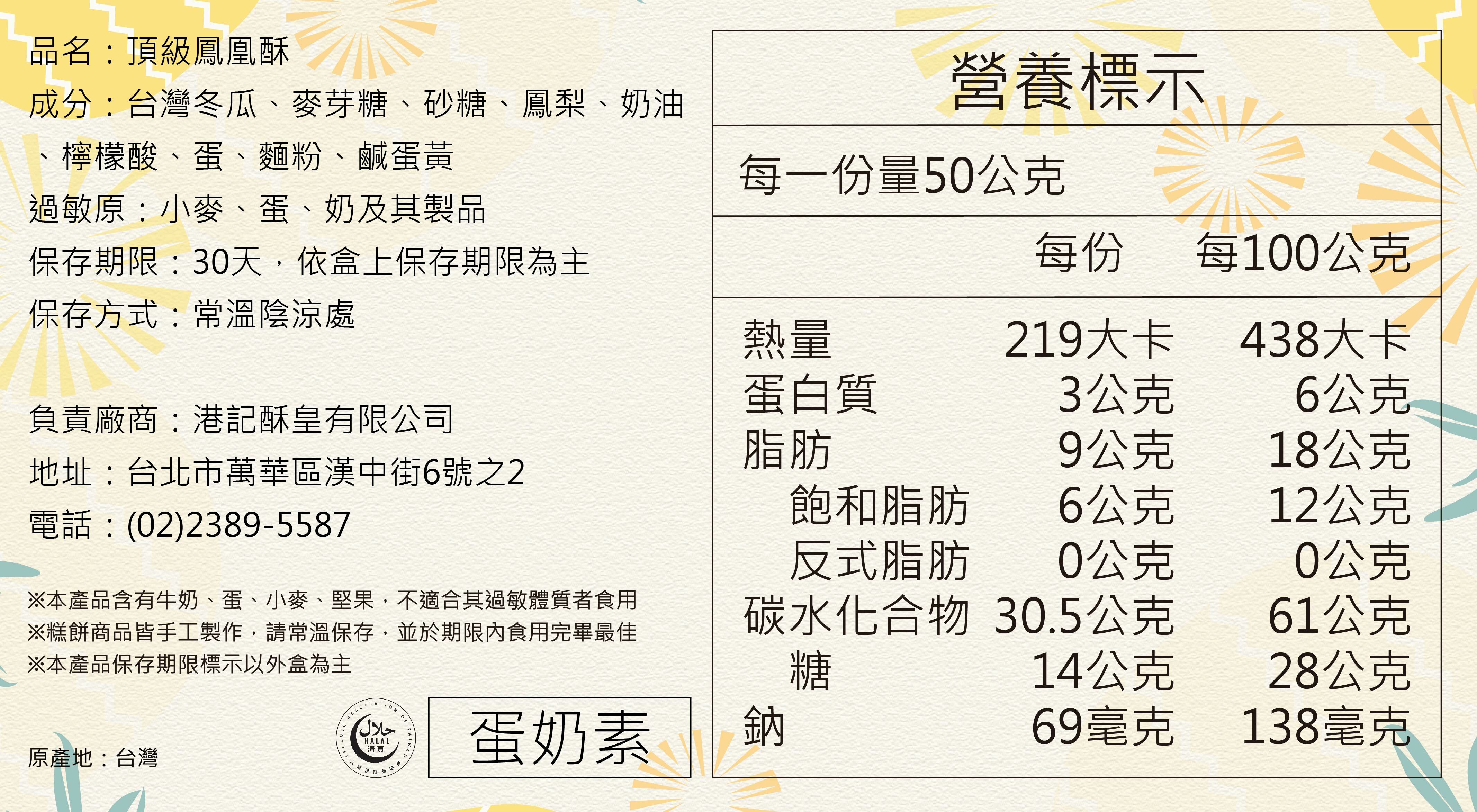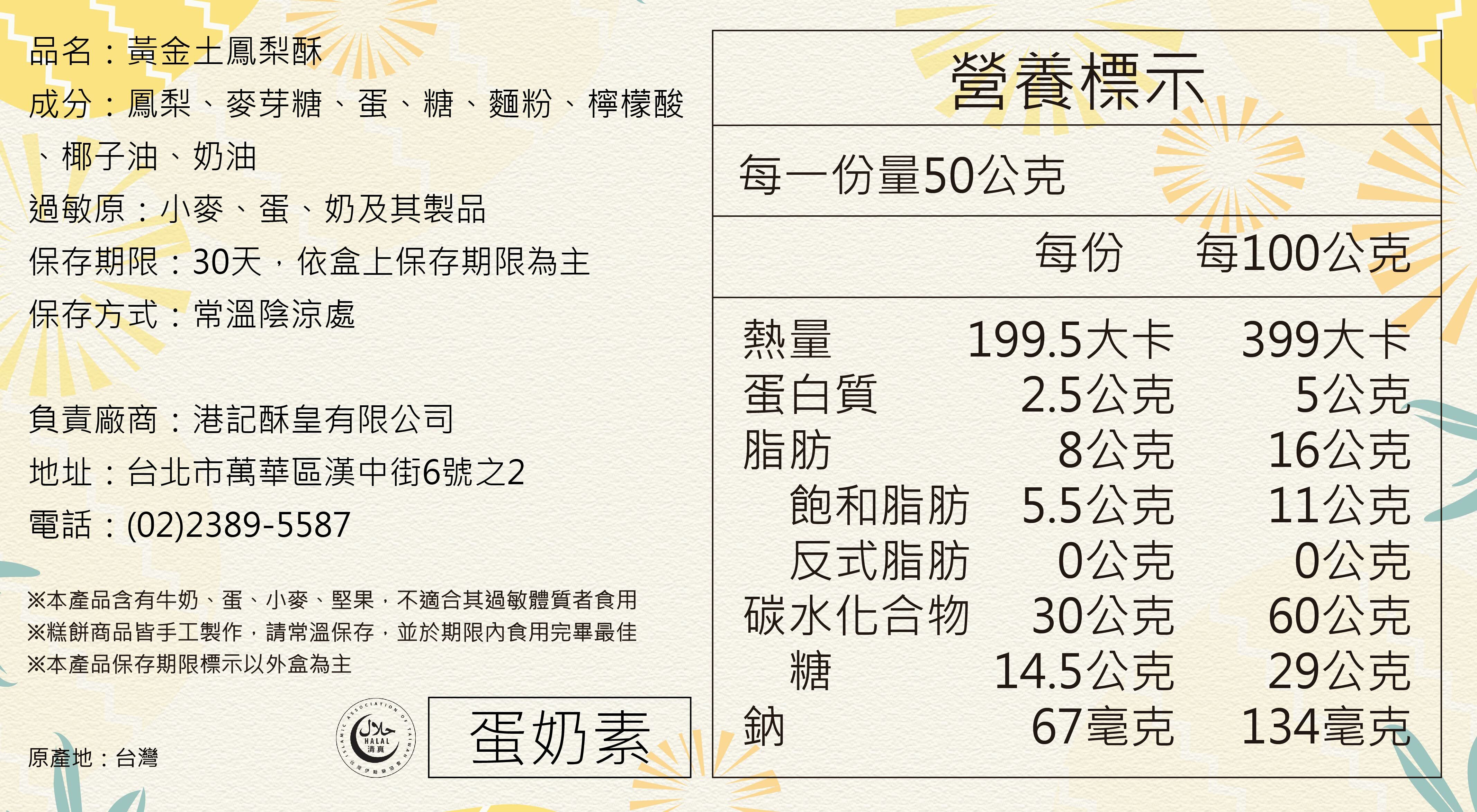 主要成份:進口安佳奶油、台灣冬瓜、鳳梨、雞蛋、糖、麵粉、鹹蛋黃