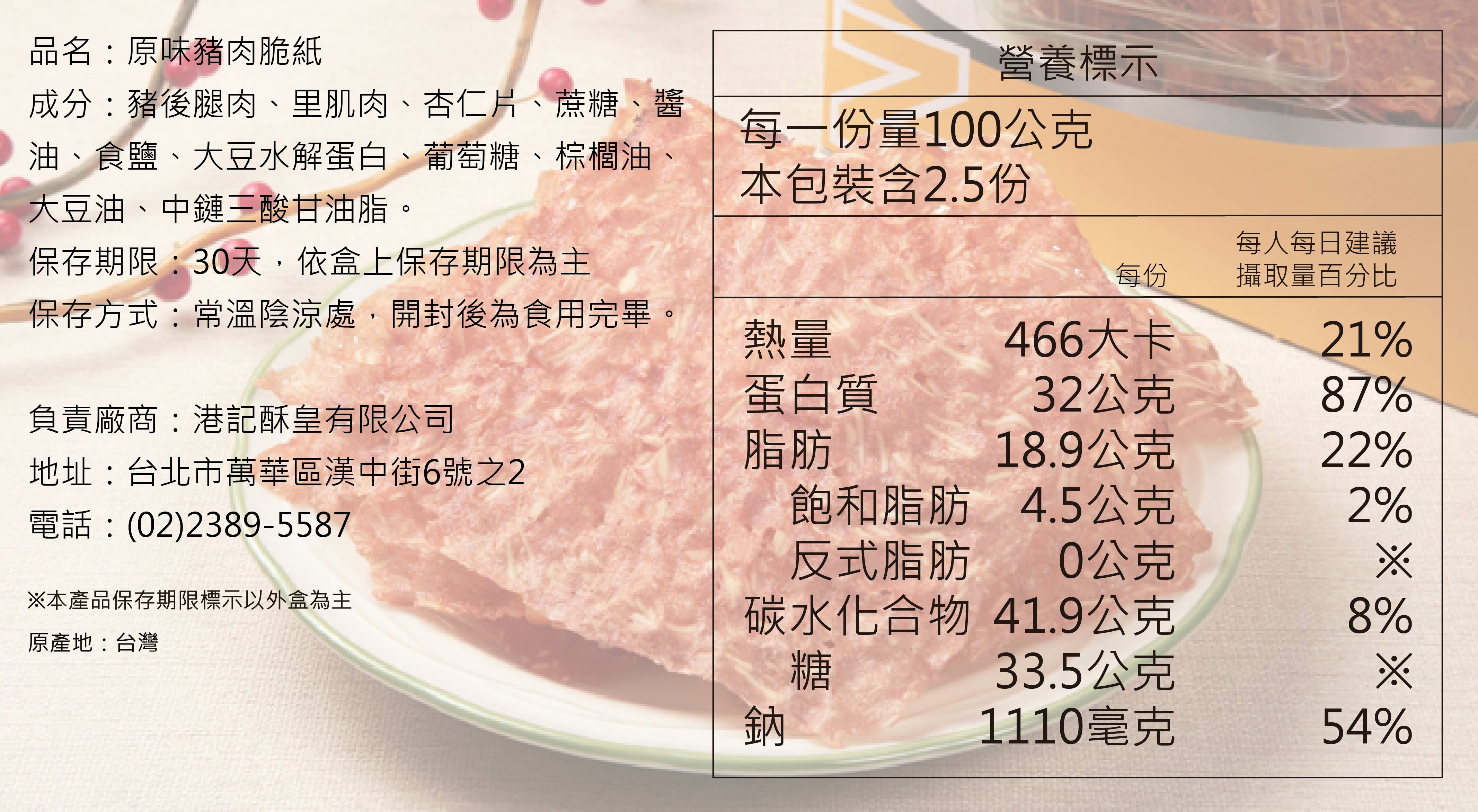 精心包裝採用密封袋與特製PC盒,延緩受潮,確保每一片肉紙的脆口感。
