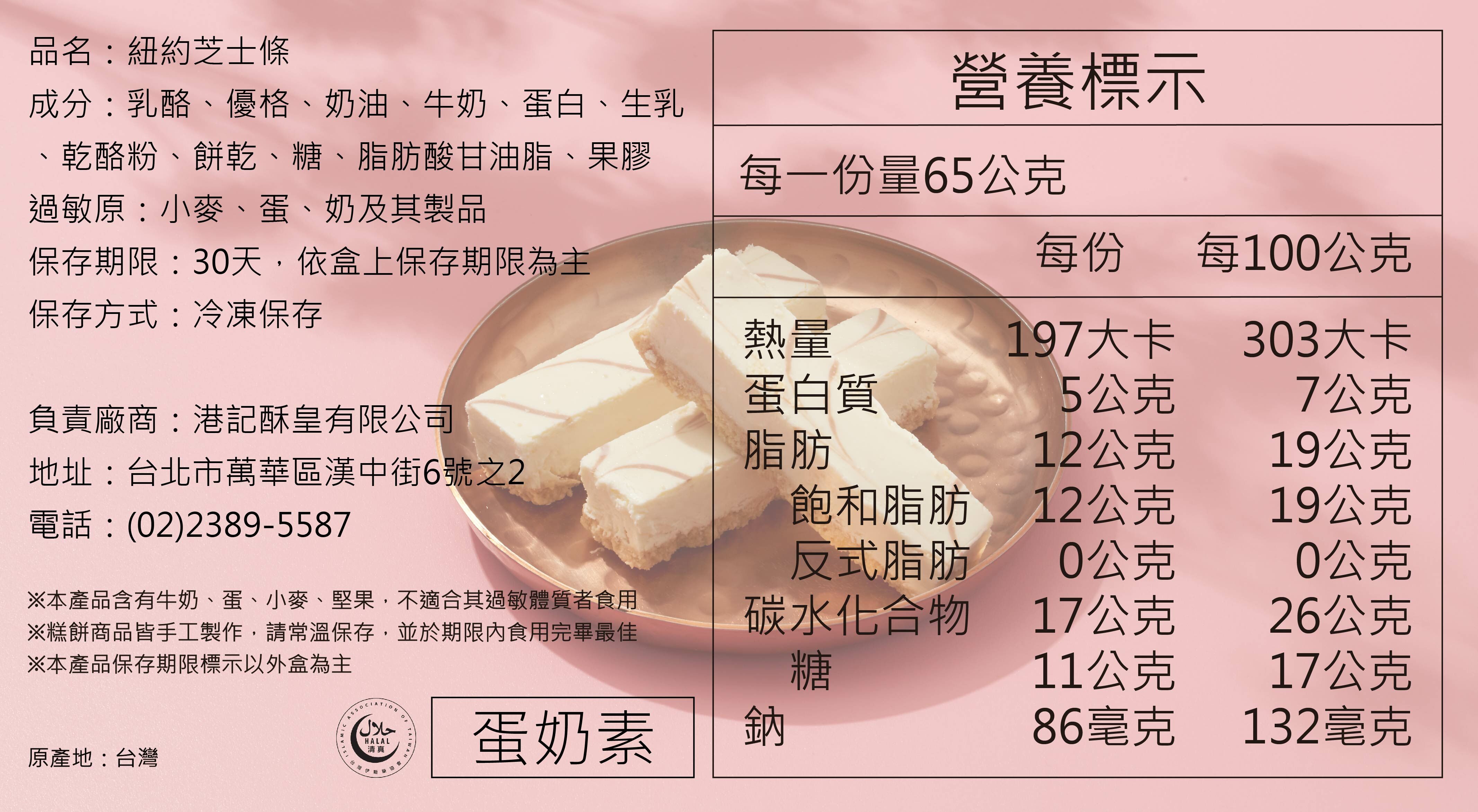 主要成份:乳酪、優格、進口安佳奶油、牛奶、蛋白、生乳、糖