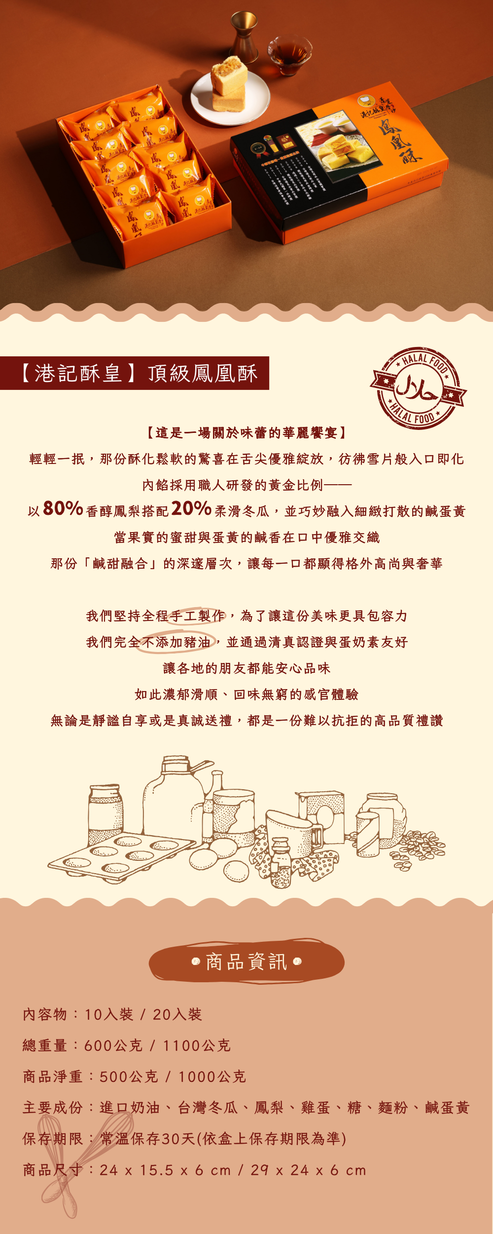 主要成份:進口奶油、台灣冬瓜、鳳梨、雞蛋、糖、麵粉、鹹蛋黃